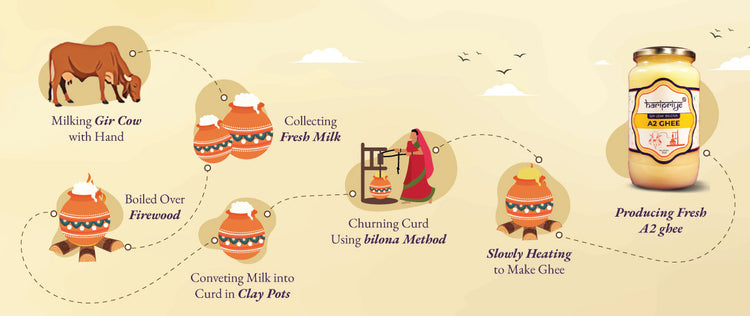 GRANDMA’S METHOD, MODERN HYGIENE - Old-school Bilona with today's hygiene standards. The result? Aromatic, golden ghee that nourishes generations.